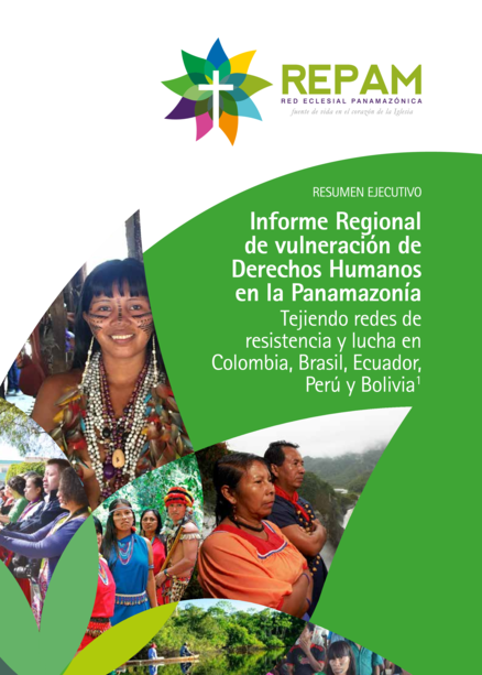"El presente documento es un resumen del Informe Regional de Vulneración de Derechos Humanos en la Panamazonía. Recoge 13 casos de violación sistemática a los derechos humanos de diferentes pueblos indígenas, comunidades campesinas y ribereñas de Colombia, Brasil, Ecuador, Perú y Bolivia. La lucha de estas comunidades por alcanzar una vida digna y cuidar la casa común ha sido larga, dolorosa y frustrante. Sin embargo, gracias al apoyo de organizaciones comprometidas, aliadas y vinculadas a la Red Eclesial Panamazónica (REPAM) ha sido posible recoger sus demandas, propuestas y llevarlas al más alto para demandar respeto a sus derechos y dignidad como seres humanos." (Introducción)
