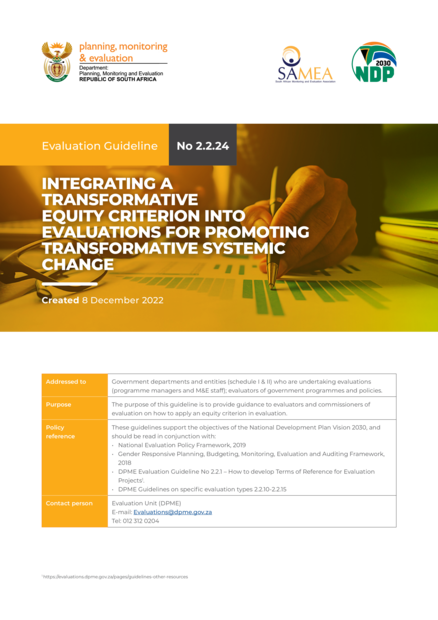 Republic of South Africa Department of Planning, Monitoring and Evaluation (DPME);South African Monitoring and Evaluation Association (SAMEA) (2022), 39 pp.