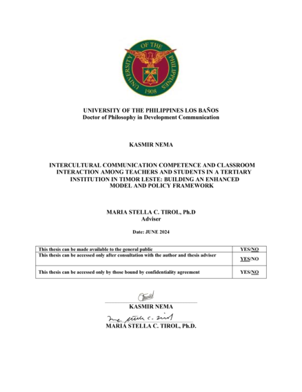 "This study examined the Intercultural Communication Competence (ICC) of teachers and students at a Catholic school in Timor Leste using Zhong et al.'s (2013) developmental model. Employing a mixed-methods design, data were collected via the ICC Self-Rating Scale (ICCRS) survey, focus group discussions, and non-participant observations. A random sample of 68 teachers and 206 students participated. Quantitative data were analyzed using mode scores across eight ICC subcategories, while qualitative data underwent thematic analysis. Results showed key insights into participants' confidence and abilities, with over half of the participants being women and teachers having more international experience than students. Classroom interactions were classified into five engagement types: unequal, language, response, knowledge, and cultural. These findings informed the creation of a new contextual model and policy framework to enhance intercultural communication. This research highlights the significance of theoretical frameworks in assessing ICC and the contextual environment of participants." (Abstract)