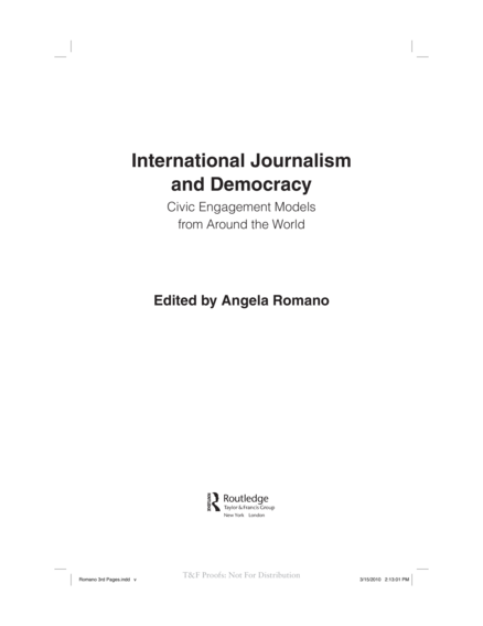 "This book examines different models from around the world of how journalism can support deliberation - the processes in which societies recognize and discuss the issues that affect them, appraise the potential responses, and make decisions about whether and how to take action. Authors from across the globe identify the types of journalism that might best assist or even drive deliberative activity in different cultural and political contexts. Case studies from 15 nations spotlight different approaches to deliberative journalism, including strategies that have sometimes been labeled as public or civic journalism, peace journalism, development journalism, citizen journalism, the street press, community journalism, social entrepreneurism, or other names. Each of the approaches that are described offer a distinctive potential to support deliberative democracy, but the book does not present any of these models or case studies as examples of categorical success. Rather, it explores different elements of the nature, strengths, limitations and challenges of each approach, as well as issues affecting their longer-term sustainability and effectiveness." (Publisher description)