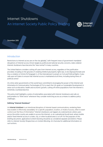 Internet Shutdowns: An Internet Society Public Policy Briefing