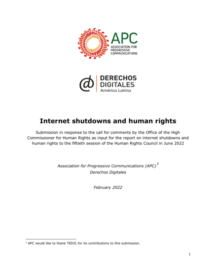 "Temporary internet disruptions and shutdowns pose serious challenges to the exercise of a wide range of rights and therefore cannot be justified under any pretext, whether these relate to preservation of national security, safeguarding the public order, or countering disinformation, among others. Any measure that restricts people's ability to connect to the internet should be strictly justified through the principles of proportionality and necessity. The notion of network disruptions should thus take into account that partial disruptions can take place and have almost as much a deleterious effect on human rights as internet shutdowns." (Conclusion, page 27)