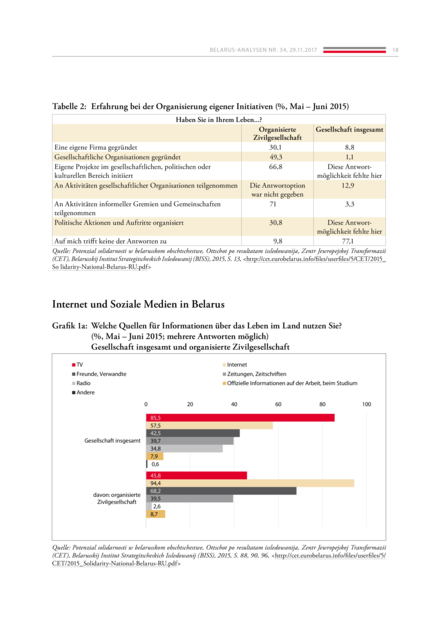 Grafik 1: Welche Quellen für Informationen über das Leben im Land nutzen Sie? -- Grafik 2: Nutzen Sie das Internet? -- Grafik 3a: Welche Informationsquellen nutzen Sie im Internet am häufigsten, um das gesellschaftliche und politische Leben im Land zu verfolgen? -- Grafik 4: Anzahl der Internetanschlüsse pro 100 Einwohner -- Grafik 5: Anzahl der Internetnutzer pro 100 Einwohner im Vergleich mit anderen Staaten (2016) -- Grafik 6: Zugang der Bevölkerung zum Internet (% der gesamten Bevölkerung) -- Grafik 7: Internetnutzer in 2016 nach Zielen (% der gesamten Bevölkerung)