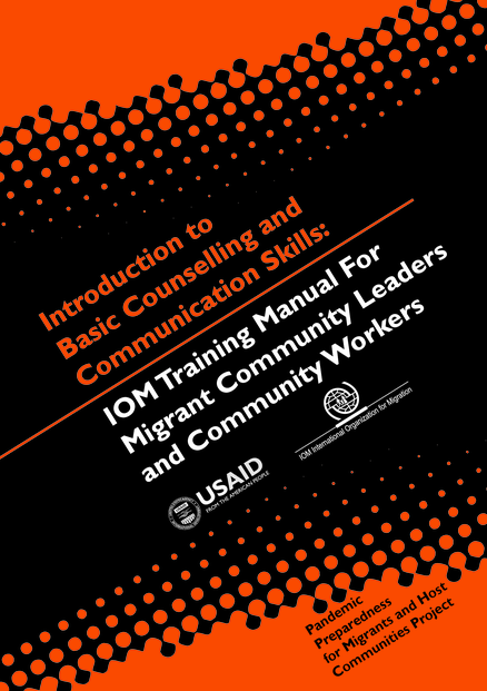 "This manual was developed and tested as part of the IOM pandemic preparedness for migrants and host communities project. The manual was designed to assist children, adolescents, adults and families living in migrant and host communities and help them cope during and in the aftermath of a pandemic. It is important to understand that, people handle difficult situations differently and not all members of a community will cope in the same way. People will experience a wide range of reactions when exposed to distressful events, ranging from the mild to the severe. Some can be amazingly resilient. When a group of people share a difficult experience, some are able to work through it and move on with their lives, while others require more support. The purpose of this training is to revise and strengthen your counselling skills, skills you may not even be aware you possess, as well as refine your communication skills. We will review the steps we use in the process of counselling and practice them in various situations." (Introduction)