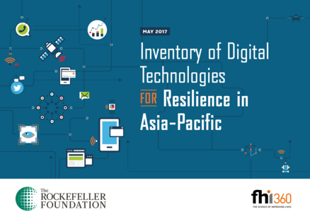 "This inventory was developed by FHI 360, with grant funding from the Rockefeller Foundation, to support resilience practitioners and the broader development community to identify digital technologies that have the potential to enhance resilience outcomes, particularly in Asia. It was primarily populated through a crowdsourced call for submissions that took place in March 2017. Given the crowdsourced nature of this inventory, responsibility for the accuracy of the content rests solely with the individuals who made submissions." (Introduction)