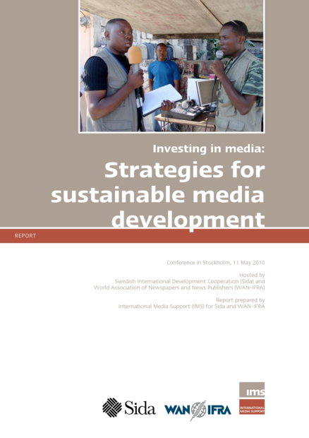 "International media development and media support is often structured and planned without taking into account the current and future position of media as economic subjects and their long term sustainability and development opportunities. Sida’s policy to engage and involve private sector actors in international development efforts and WAN-IFRA’s unique position as a media trade organisation with a human rights mandate, has resulted in a partnership between Sida and WAN-IFRA to work together in advancing media development and press freedom worldwide [...] This event is the beginning of an initiative to establish a systematic and holistic approach to assistance to financially viable independent media in developing markets." (Foreword)