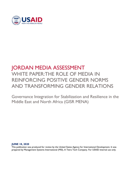 Jordan Media Assessment. White Paper: The Role of Media in Reinforcing Positive Gender Norms and Transforming Gender Relations