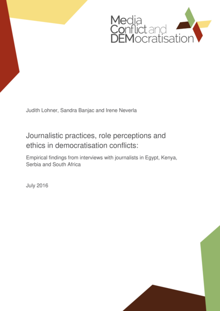 "This report provides an overview of core comparative findings from MeCoDEM interviews with journalists in Egypt, Kenya, Serbia and South Africa. It investigates the role of journalistic actors in transitional societies across a set of comparable democratisation conflicts and themes of inquiry: journalistic work practices, role perceptions, and ethical principles and dilemmas. Empirically, the study builds on qualitative semi-structured face-to face in-depth interviews with 100 professional journalists working for local news organisations in the four countries." (Executive summary)
