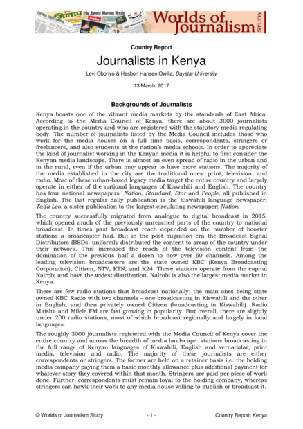 Roles supportive of a development agenda scored somewhere in the middle of the table. This is an important and surprising perception as well. Kenya is a developing country and it would have been natural to expect that development was a default role for the media. But development-related responses scored 78.8 percent and 69.2 percent respectively. While this is still a high score, it is not among the top considerations of the media." (Journalistic roles, pages 3-4)