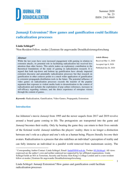 Jumanji Extremism? How Games and Gamification Could Facilitate Radicalization Processes