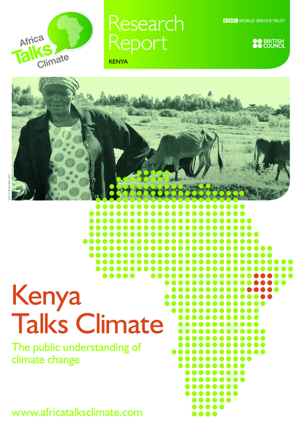 "In May 2009, the BBC world Service Trust’s Research and Learning Group, on behalf of the British Council, conducted research in Kenya to gauge public understanding of climate change. The research consisted of 12 focus-group discussions with Kenyan citizens, as well as 17 in-depth interviews with opinion leaders from government, religious institutions, the private sector, the media and civil society. The overall objective was to find out what people think about climate change, and to determine how to tailor communication and media strategies to support Kenya’s response to climate change.