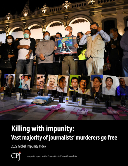 "The 2022 Global Impunity Index found that no one has been held to account for nearly 80% of 263 journalist murders over the past 10 years worldwide. CPJ seeks justice for these slain journalists, including full and timely investigations and the convictions of those who carry out and order the murders." (About this report)