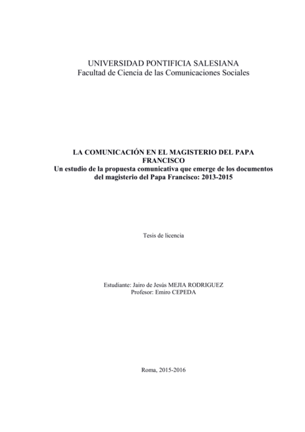 "La conclusión de esta investigación es que la visión comunicativa del Papa Francisco está ligada al testimonio de vida, al gesto, a la metáfora, a los ejemplos de la vida real, a la misericordia y al encuentro con el otro. En este encuentro se debe vivir un verdadero diálogo en el que se debe comunicar el rostro misericordioso de Dios. Su estilo de comunicación se caracteriza por comunicar con el cuerpo y las palabras. Es una comunicación creadora de encuentros. Esto implica apertura a los demás, valorar a los otros. El Papa crea diálogos con espontaneidad, lo que se observa cuando interrumpe un discurso para dar espacio al diálogo y mirar al auditorio que le escucha. De esa manera, el Papa da confianza a la gente y se hace más cercano." (Conclusión, páginas 119-120)