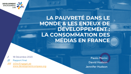"C’est par le biais des actualités portant sur les questions migratoires et les conflits armés que les Français sont le plus à même de s’informer à propos de la pauvreté dans le monde. Le public français préfère être informé sur la pauvreté dans le monde à l’occasion des actualités et au cours de reportages; il y a peu d’appétence quant au fait que ce sujet soit développé dans d’autres formats télévisuels. Plus d’un tiers des répondants interagissent avec des associations en « likant », en « commentant » ou en « partageant » les contenus qu’elles proposent. Seuls 18% des répondants déclarent que les personnes qu’ils suivent sur les réseaux sociaux partagent des contenus sur le développement et la pauvreté dans le monde." (slide 11)
