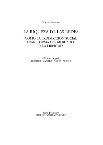 La riqueza de las redes: Cómo la producción social transforma los mercados y la libertad