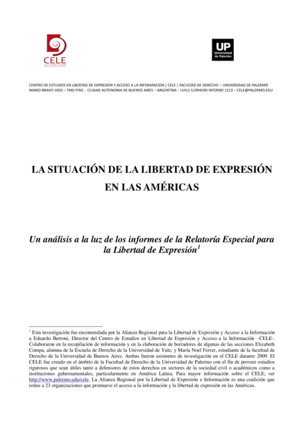 Buenos Aires: Universidad de Palermo, Centro de Estudios en Libertad de Expresión a Acceso a la Información (CELE) (2010), 48 pp.