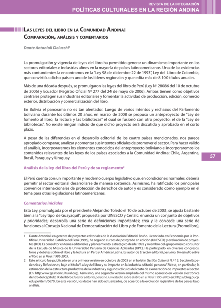 "En general, la legislación de cada país obedece al grado de intervención del Estado en su economía y su impacto depende de la capacidad de cada sector de enfrentar las condiciones del mercado. Siendo el sector editorial altamente sensible a los cambios en la economía local, regional y mundial, el éxito en la implementación de leyes y políticas públicas depende de la integración de sus agentes y de la claridad de objetivos legislativos. Por ello, en términos del Centro Regional para el Fomento del Libro en América Latina y el Caribe (CERLALC), dada la interrelación entre todos los agentes del “ecosistema del libro”, el impacto que genera la implementación de políticas públicas en un agente, afecta, inevitablemente al resto de ellos, alterando el funcionamiento de todo este ecosistema. Considerando lo anterior, CERLALC propuso la “Ley tipo de Guayaquil”15, elaborada por sus especialistas, que constituye una herramienta de promoción sectorial de indiscutible valor. En resumen, esta ley tipo se divide en siete secciones y utiliza temas y elementos comunes a cualquiera de nuestros países: Objetivos generales, Autoridad de aplicación, Fomento de la oferta editorial, Fomento de la demanda editorial y de los hábitos de lectura, Control de ediciones y protección de derechos de autor, Sanciones, Reglamento y vigencia. No se busca proponer que la legislación de los países con sectores editoriales menos desarrollados sea reemplazada por esta “ley tipo”, sí queremos sugerir su revisión y análisis, a fin de corregir las imperfecciones de nuestras leyes y potenciar su desarrollo." (Comentarios finales, página 68)