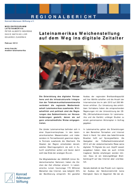 Buenos Aires: Konrad-Adenauer-Stiftung (KAS), Medienprogramm Lateinamerika (2012), 8 pp.