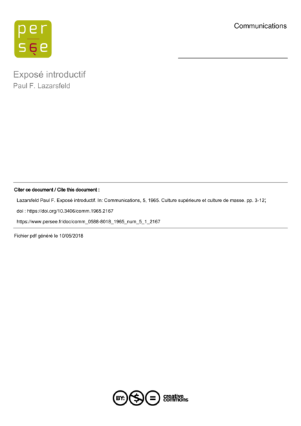 "Il s'agit d'une suite d'exposés présentés sur la manière dont les intellectuels de notre temps envisagent la culture des masses et sont disposés à' y contribuer — A cette occasion, les notions de culture, d'éducation populaire et de culture de masse sont analysées et comparées." (Jean-Marie Van Bol, Abdelfattah Fakhfakh: The use of mass media in the developing countries. Brussels: CIDESA, 1971 Nr. 1267, topic code 00)