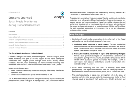 Lessons Learned: Social Media Monitoring During Humanitarian Crises
