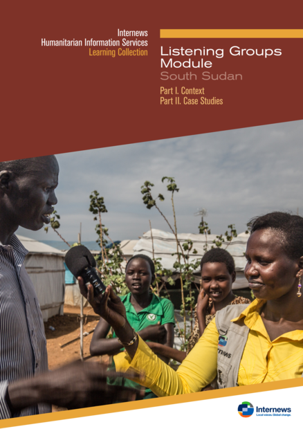 "The Listening Groups Module contains the collective knowledge of the Internews South Sudan team gained over three years’ experience managing more than 700 Listening Groups across the country [...] “Part I. Context” describes the information and media landscape in South Sudan, and the value of Listening Groups as a tool for communicating with communities, accountability, and adaptive programming. “Part II. Case Study” discusses the implementation of Listening Groups to gather feedback on HIS programs in Juba and Malakal, as well as the Listening Groups organized in Abyei to support Internews’ news and information project in the area. The case studies also cover challenges and lessons learned in order to offer recommendations for future Listening Group activities." (Page 3)