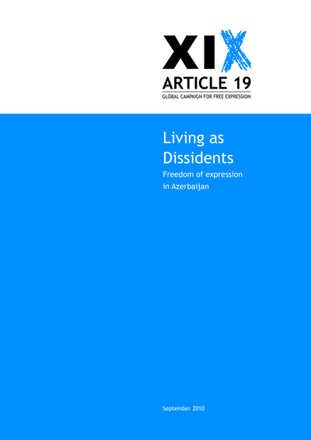 "The freedom of expression situation in Azerbaijan has deteriorated significantly over the past five years. Since the 2005 parliamentary elections in Azerbaijan, the authorities have demonstrated an intolerance to criticism, using a variety of tactics to silence critical voices. As a result, many civil society and political activists feel they are living again as dissidents, as they did under the Soviet system. In this report, ARTICLE 19 analyses trends of concern from a freedom of expression perspective over the past five years, with a particular focus on freedom of political expression. The report contains individual case studies, as well as an overview of international freedom of expression standards and the relevant domestic legal framework in Azerbaijan. It also contains ARTICLE 19’s recommendations to the Azerbaijani government and the international community on how to improve the freedom of expression situation, which should be considered among the most pressing human rights concerns in Azerbaijan." (Back of the publication)