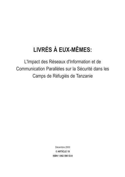 Livrés á eux.mêmes: L'Impact des réseaux d'Information et de communication parallèles sur la sécurité dans les camps de réfugiés de Tanzanie
