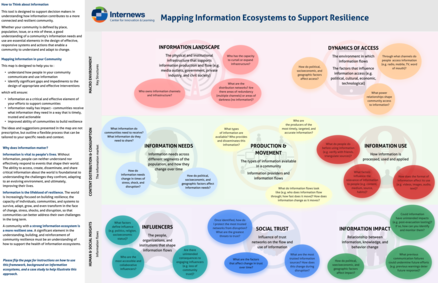 "This tool is designed to support decision makers in understanding how information contributes to a more connected and resilient community. Whether your community is defined by place, population, issue, or a mix of these, a good understanding of a community's information needs and use are essential elements in the design of effective, responsive systems and actions that enable a community to understand and adapt to change." (Page 1)