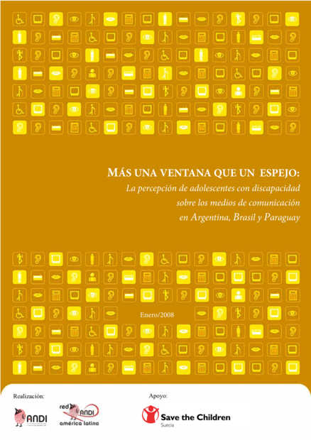 "Jóvenes con discapacidad de tres países de América Latina debaten sobre cuándo y de qué manera retratan su realidad los medios de comunicación, especialmente en el caso de la televisión. Las opiniones documentadas dan pistas sobre cómo se construye una disociación en el ámbito discapacidad y adolescencia, por lo menos en la pequeña pantalla." (Resumen ejecutivo)
