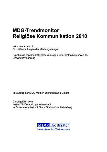 München: Medien-Dienstleistung GmbH (MDG);Institut für Demoskopie Allensbach;Sinus Sociovision (2010), 206 pp.