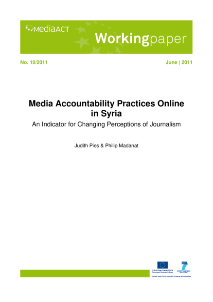 In addition, news websites have added new topics to the traditional news agenda by taking the audience into account, and thus have contributed to holding the media accountable for aspects the old media does not cover. Thus, at least in some cases, media has played the role of being a watchdog over political decisions, which role media has never previously adopted. have particularly contributed to a shift in society’s perception of the role of media by paving the way for media accountability practices in the field of responsiveness. Even though instruments for responsiveness might be part of an economic strategy of news websites to enter and survive the news media field, news websites have introduced an audience oriented journalism approach by providing collaborative story writing or possibilities for the audience to comment on news. This is a fundamental change in role perception as mobilising media was merely meant to serve the Baath elite and its ideas. Thus, the audience as a neglected actor of accountability seems to have entered the field." (Summary)