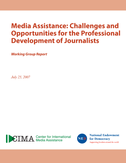 "This report represents input from twenty-three practitioners who have observed, planned, and implemented media education programs of the U.S. and other Western governments, as well as those of private funders. The group discussed broad lessons learned and specific recommendations for policymakers, donors, and implementers on how to improve U.S. foreign assistance for professional development of journalists. The executive summary (page 4) concludes: "Their recommendations are encompassed in three main ideas. First, improving media is a local project that requires local remedies, local partners, and deep understanding of local values and circumstances. One solution never fits all—just as ethical norms must be put into practice to fit local realities, so must programs fit local limitations. Second, success requires that the right people do the right job, preferably in concert on mutually determined goals, moderated by flexible rules and evaluated on long-term and qualitative goals. This means that donors should support creative programming by dedicated trainers and teachers who work with engaged journalists and persevering managers. Third, donors who want to be effective need to understand that short-term funding and training have not created long-term impact." (commbox)