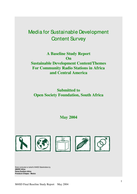 "The summary of findings for this study is drawn from extensive research conducted in the form of questionnaires and focus groups. The aim of the study was to assess the level at which community radio stations in Africa are involved in programming of content on sustainable development themes/ topics. Investigations conducted through the study indicate that in general, community radio stations are still struggling with producing content on sustainable development. One of the reasons is the lack of understanding and distinction of what sustainable content is especially in the specific context of the different communities. Findings however also indicate that despite challenges faced by the sector, community radio stations are making some efforts to produce programmes on sustainable content although they are also faced with challenges on identifying and working with relevant stakeholders for content development. This report makes specific recommendation on how community radio stations can improve on sustainable programming." (Executive summary of findings, page 5-6)