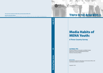 "This pilot study surveyed 2,744 university and high school students in Jordan, Lebanon, and the United Arab Emirates. It asked about their media consumption and production habits, and about their attitudes towards certain media. Among the significant findings, the survey found the participants highly adept at using new media. They spent considerable time consuming new and traditional media, but much less time producing media content. For instance, the vast majority of participants indicated that they had never blogged. In addition, those who did produce media content, through blogging or otherwise, tended to do it in a language other than their native language. Indeed, with the exception of news, the majority of surveyed youth consumed and produced media in English, rather than Arabic. In addition, the participants used media predominantly for entertainment, for connecting with others, and for work or schoolwork, but less often for current affairs, for expressing their opinions, or for political activism." (Summary of findings, page 9)