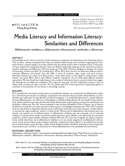 "In knowledge society, there is currently a call for cultivating a combination of media literacy and information literacy. This, however, requires cooperation from these two separate fields of study, and uncertainty regarding their boundaries hinders a smooth merger. It is unclear whether they are subsets of each other or separate entities. In this study, we have explored the relationship between these two fields by empirically mapping out their territories and discussing their similarities and differences. We have made use of the Web of Science database to delineate the content and boundary of these two fields. Our findings from 1956 to 2012 show that the two fields have different authors, university affiliations, and journals; they also differ in terms of academic origin, scope, and social concern. Information literacy has a closer tie to library science, while media literacy is more related to media content, media industry, and social effects. Due to their different academic orientations, the two fields adopt different analytical approaches. We have found that media literacy is not a subset of information literacy as some scholars have suggested,although the two fields have similarities. They share the same goal, and their publications overlap in terms of subject areas, countries of origin, and titles. The two fields could find common ground by cooperating together to contribute to the promotion of new literacy in knowledge societies." (Abstract)