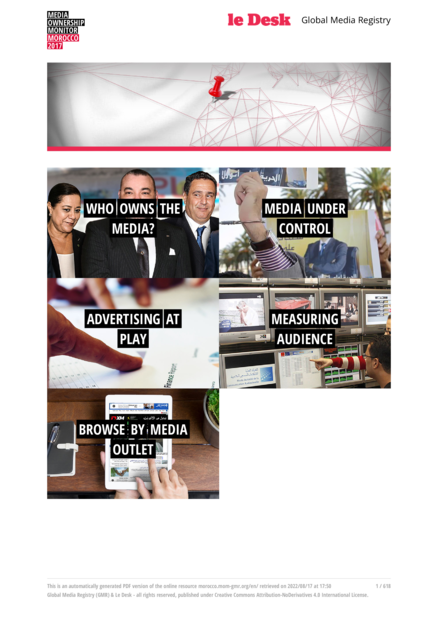 "Nine of the 36 media companies involved in Morocco’s most influential media are directly linked to the state, the government or the royal family. Four of them – SOREAD, SNRT, EcoMedias and Horizon Press – are among the most important media companies in terms of turnover and show the potential influence of politically linked media owners. The royal family itself is a leading media owner. Its holding company, the Société Nationale d’Investissement (SNI), has shares in four media companies, three of which are among the top five media companies (SOREAD, EcoMedias and Radio Méditerranée Internationale). One of the key questions raised by the MOM’s findings is why leading figures from the business and financial world invest in newspapers that make no profit. Some of Morocco’s richest businessmen have stakes in five of the nine French-language publications examined by the MOM: Aujourd’hui Le Maroc, La Vie Eco, Les Inspirations Eco, La Nouvelle Tribune and L’Economiste. Two of these businessmen, Aziz Akhannouch and Moulay Hafid Elalamy, are also government ministers." (http://www.mom-rsf.org)