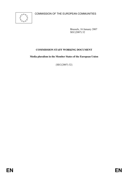 Media Pluralism in the Member States of the European Union: Commission Staff Working Document