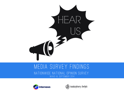 Key findings include: 35% of people interviewed had family members working outside of Nepal; 86% of households had a working mobile phone (92.5% in urban; 84.3% in rural areas); 49% had a working television (79.5% in urban; 42.3% in rural areas); 45% a working radio (46.1% in urban; 45.3% in rural areas); 10% a computer (24.6% in urban; 6.5% in rural areas); 5% the internet (16.1% in urban; 3.1% in rural areas); Men are more likely to listen to the radio than women, but on average 46% of people never listen to the radio. For 79% of these people, it is because they don't have a radio; For those who do listen to the radio, 62% like news programmes best, followed by 27% preferring music shows. Only 1% said they liked drama programmes the most; Of the 12% of people who use the internet (23% urban; 10% rural), 88% access it on their mobile phone, and 92% use it for social media; 38% of people's mobile phone is a smart phone (55% in urban areas, 36% in rural areas); Overall, radio was regarded as the most trustworthy media, and 38% said that radio was their preferred medium for obtaining news and information. This was different in rural areas, where 41% quoted radio, and 22% said TV, to urban areas, where 22% said radio and 39% said TV; The most important topic people wanted to hear/read about was news about Nepal (54%).