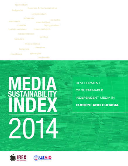 "The 2014 MSI study for Europe & Eurasia is marked by an overall constancy of scores, for better or worse. Taken as a whole, the average of 21 overall scores shows an increase of 0.01 compared with last year. Out of the 21 countries studied, 13 showed a change in score of less than 0.10. Of the remaining eight showing significant change, five were headed in a negative direction while three showed improvement. The lack of change was in some cases a sign of resilience and part of a positive overall trend: for example, in Albania, Kosovo, and Moldova panelists noted that recent achievements are not eroding and the media as a whole are finding space to operate independently and are resistant to political control. However, in some cases, such as Ukraine and Serbia, the unchanged scores reflect a sense of frustration on the part of panelists—and a resolve to play a stronger role in bringing about change." (Executive summary)
