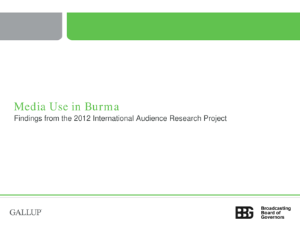 "Burma s media environment is underdeveloped and firmly anchored in old media, but changes have started. Radio is the most used media for entertainment and news in Burma, and domestic outlets have expanded rapidly in recent years. Television s growth in urban areas has been striking in recent years. A very limited number of private players have gained market access, tapping into a deep desire for entertainment, religion, and "news you can use." Burmese are cautious but appear to trust local media more than in the past. Web and mobile infrastructure lags with slow connections and low use. Mobile phone growth potential is high." (Conclusions, page 52)