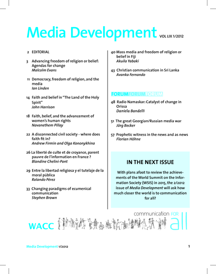 Democracy, freedom of religion, and the media / Ian Linden, 11