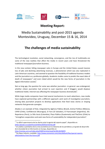 Meeting Report: Media Sustainability and Post-2015 Agenda. Montevideo, Uruguay, December 15 & 16, 2014