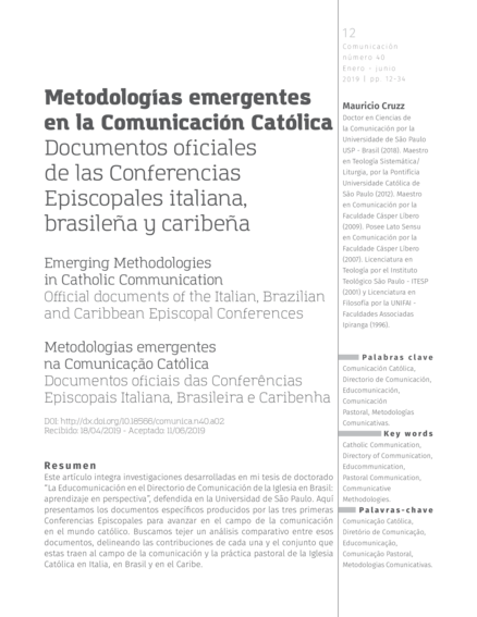 Metodologias emergentes na comunicação católica: Documentos oficiais das Conferências Episcopais Italiana, Brasileira e Caribenha