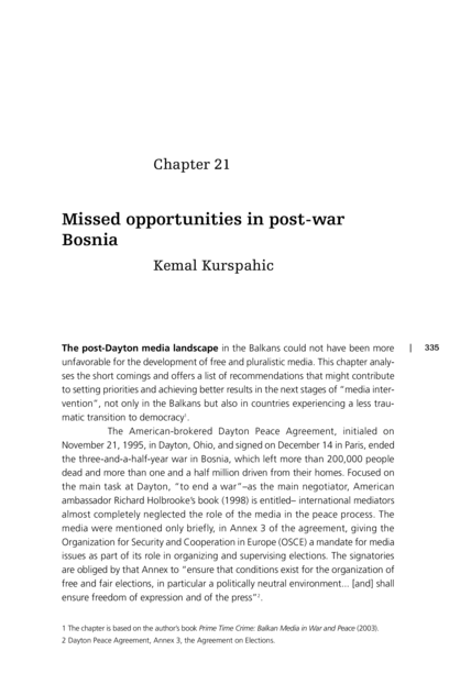 Missed Opportunities in Post-War Bosnia