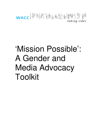 "This toolkit is divided into two key sections. Section One - defines the conceptual issues on gender and media advocacy; looks at why the media should be a focus of gender and feminist activism; highlights the key issues for gender and media advocacy using the findings of the Global Media Monitoring Project (GMMP) 2005; and discusses the various target audiences key to achieve change. Section Two - provides the tactical information on the steps, tools and strategies that are useful in gender and media advocacy; provides tips and pointers on how to engage with the media and how to put gender on the news agenda. Information boxes, case studies and discussion points are provided in the various chapters. At the end of each Section, the user will find a glossary of key terms used in the chapters, and a summary of the key pointers and issues that have emerged from the chapters." (Page 6)
