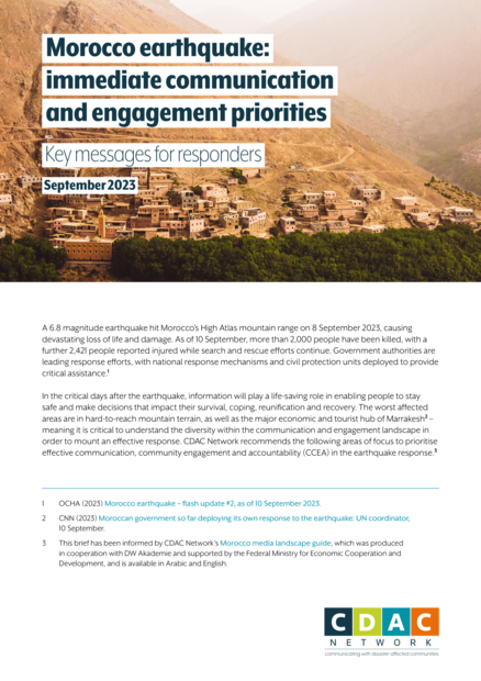 Morocco earthquake: Immediate communication and engagement priorities. Key messages for responders