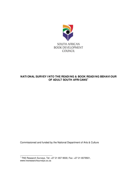 National Survey Into the Reading & Book Reading Behaviour of Adult South Africans