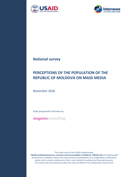 "55% of the interviewees have mixed feelings about how well informed they are regarding the general events from the Republic of Moldova. 43% of the respondents stated that they don’t feel informed at all or feel informed to a small extent regarding the events from the country. At the same time, 40% stated that they are satisfied with the Republic of Moldova mass media. A large percentage - 92% - of the respondents totally agree or somewhat agree that “it is important for Moldovans to be able to distinguish the news which intend to manipulate and misinform citizens”. At the same time, when asked what type of sources they use for information, almost half (45%) mentioned that they follow the news, but are not sure which sources are independent. 44% of the respondents believe that it would be “difficult” or “very difficult” to distinguish when mass media’s intention is to manipulate or change the opinion of the citizens. At the same time, 61% of the interviewees believe that the population of Moldova could hardly make a difference between fake and real news. 85% of the participants believe that news in the Republic of Moldova are influenced by politics 'a lot' or 'very much'." (Summary)