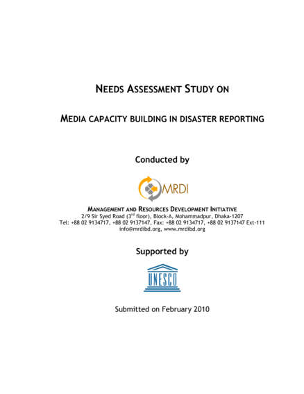 Needs Assessment Study on Media Capacity Building in Disaster Reporting