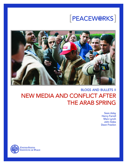 "An extraordinary wave of popular protest swept the Arab world in 2011. Massive popular mobilization brought down long-ruling leaders in Tunisia and Egypt, helped spark bloody struggles in Bahrain, Libya, Syria, and Yemen, and fundamentally reshaped the nature of politics in the region. New media - at least that which uses bit.ly linkages - did not appear to play a significant role in either in-country collective action or regional diffusion during this period. This lack of impact does not mean that social media.or digital media generally were unimportant. Nor does it preclude the possibility that other new media technologies were significant in these contexts, or even that different Twitter or link data would show different results. But it does mean that at least in terms of media that use bit.ly links (especially Twitter), data do not provide strong support for claims of significant new media impact on Arab Spring political protests. New media outlets that use bit.ly are more likely to spread information outside the region than inside it, acting like a megaphone more than a rallying cry. This dissemination could be significant if it led to a boomerang effect that brought international pressure to bear on autocratic regimes, or helped reduce a regimefs tendency to crack down violently on protests. It is increasingly difficult to separate new media from old media. In the Arab Spring, the two reinforced each other. New media must be understood as part of a wider information arena in which new and old media form complex interrelationships. Of the four major Arab Spring protests analyzed - Tunisia, Egypt, Libya, and Bahrain - large differences were found across the four in the amount of information consumed via social media. The events in Egypt and in Libya (#jan25 and #feb17, respectively) garnered many more clicks on a much larger number of URLs than those in Tunisia and Bahrain." (Summary, page 3)